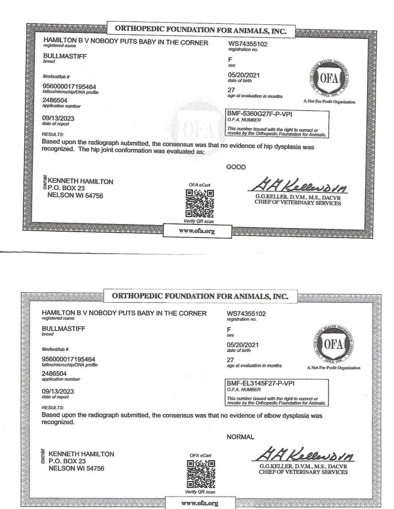 OFA Rated Hips – Good