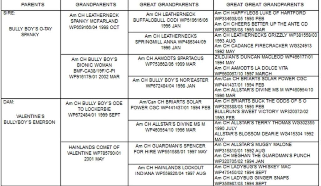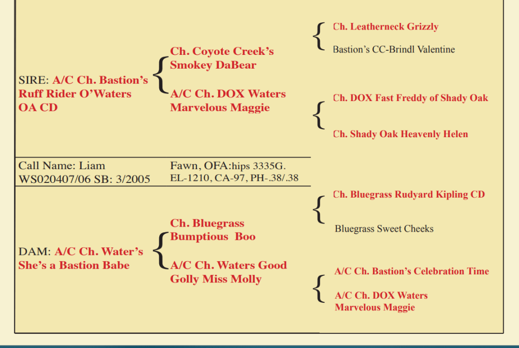 A Multi Champion, Multi Group placer, Chic Number (health screenings) OFA excellent.