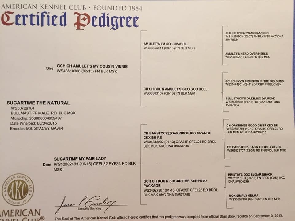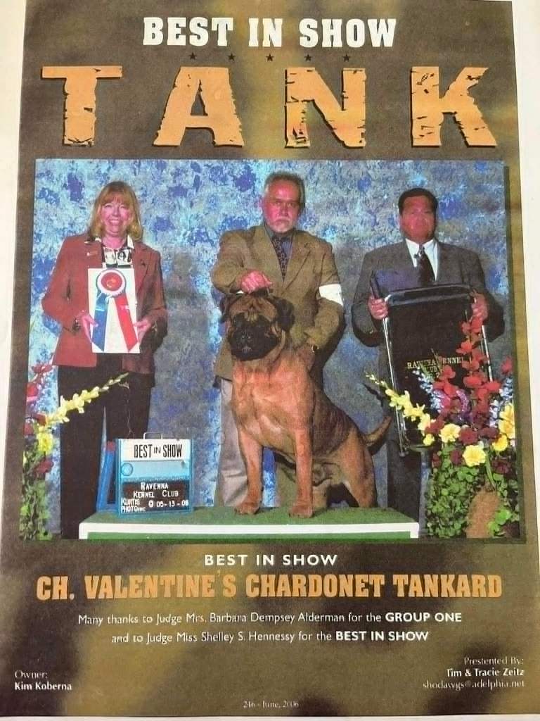 Won Select at Westminster Dog Show. Has held placement of #1 Bullmastiff