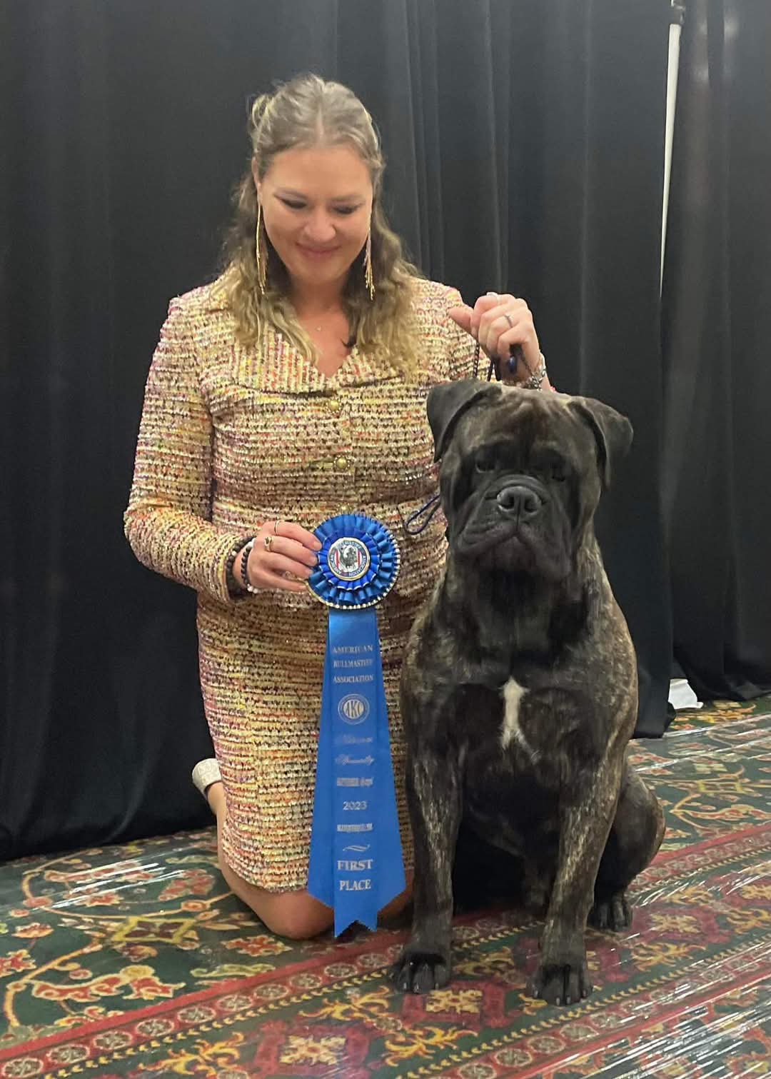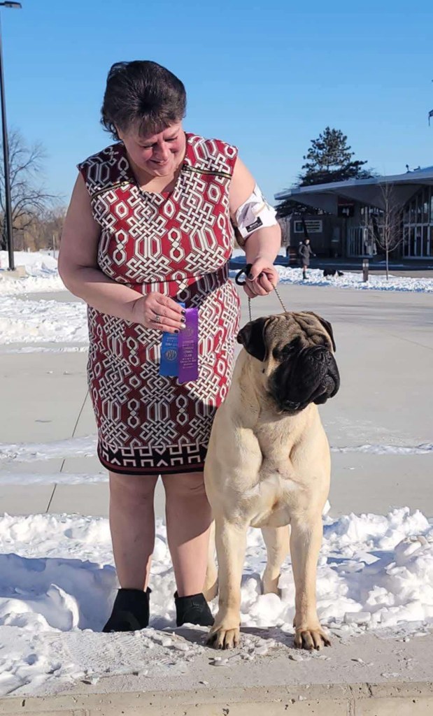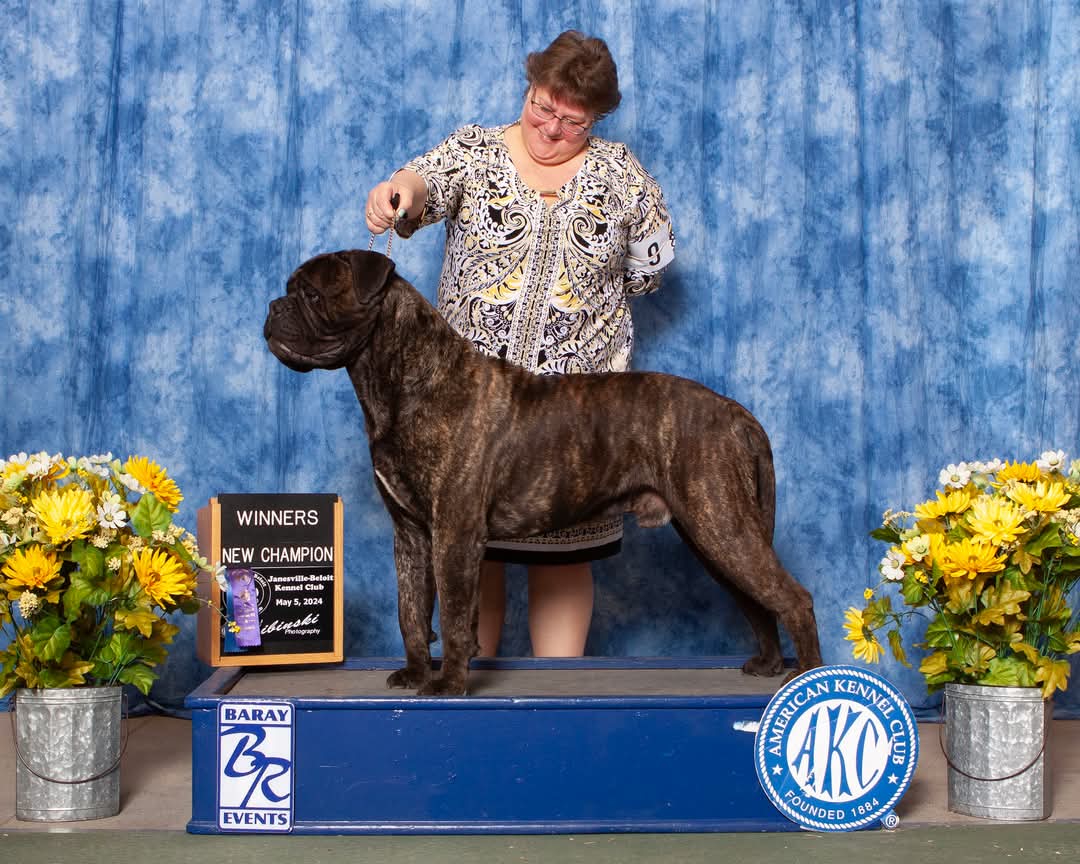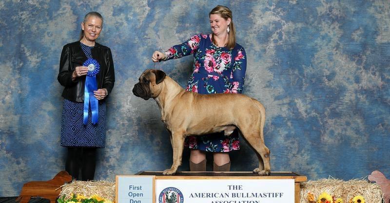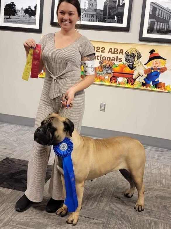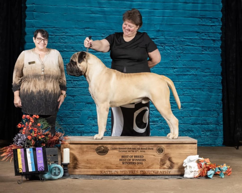 Sole and Michelle Cramblett Baker win First Place at the American Bullmastiff Association Nationals in Massachusetts in Oct. ’24