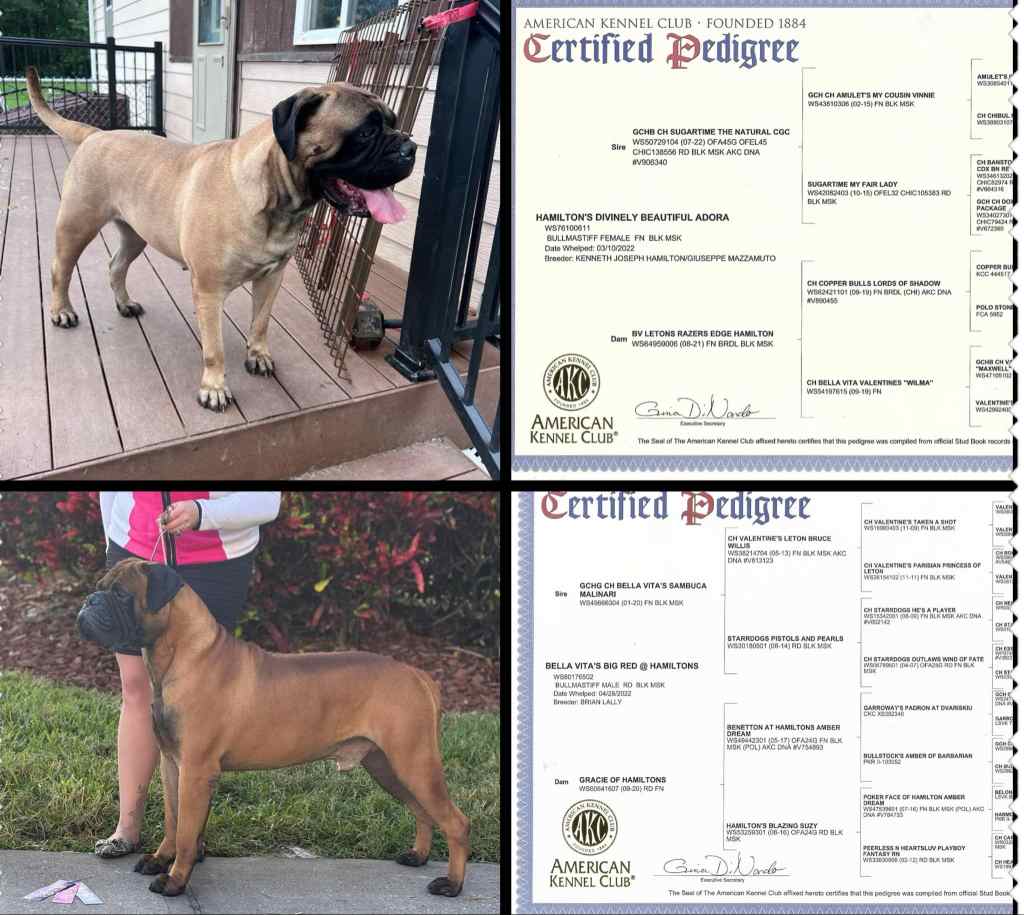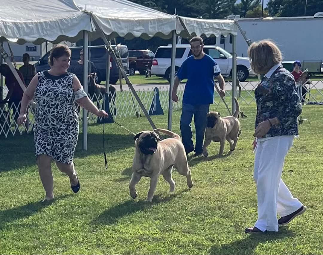 Sammy and Michelle Cramblett Baker take 2nd and 3rd placements at the American Bullmastiff Association Nationals in Boxborough in October ’24.