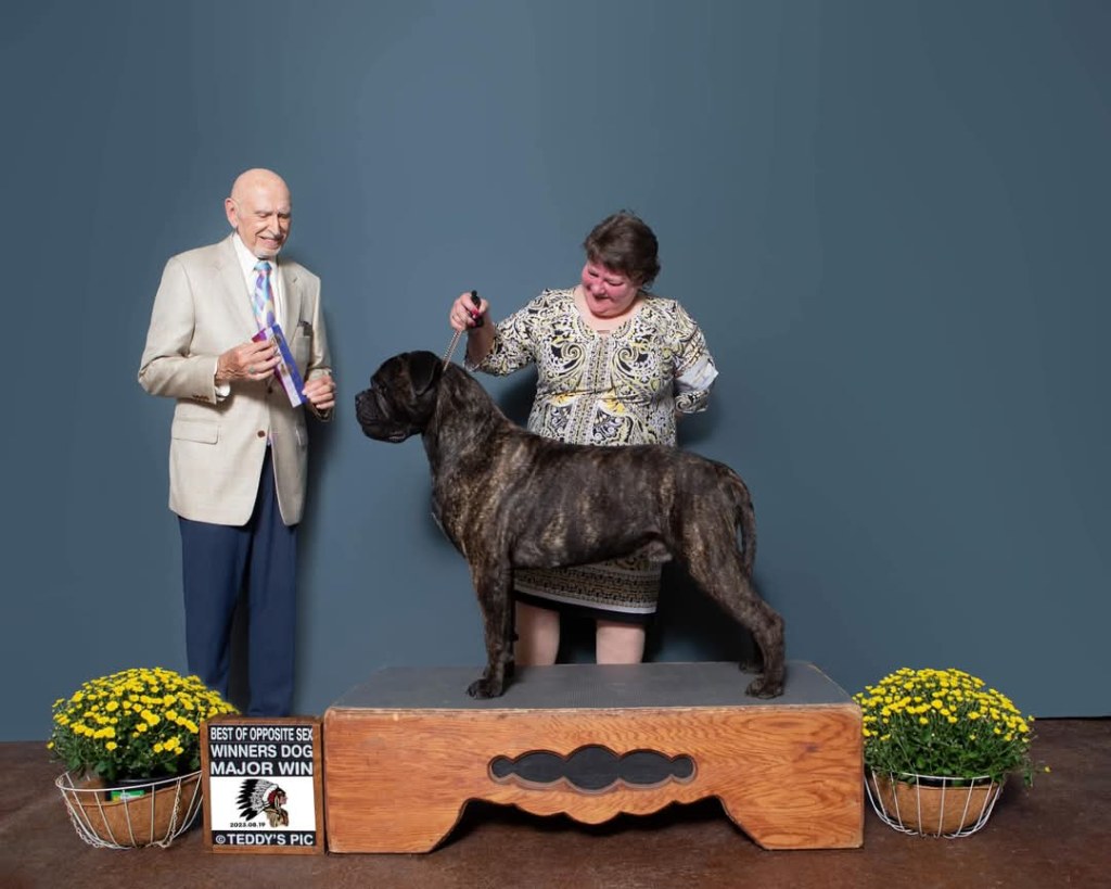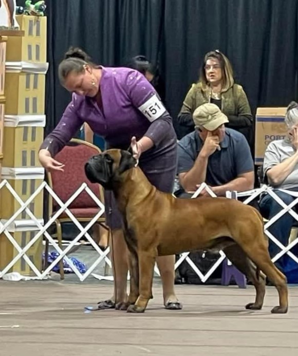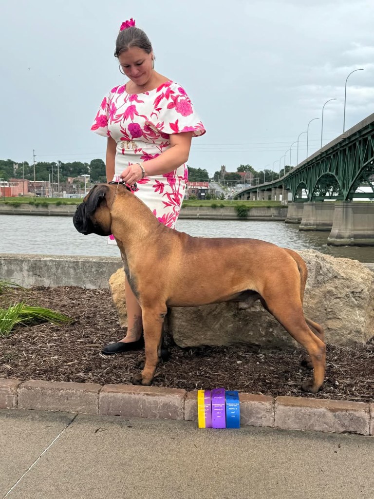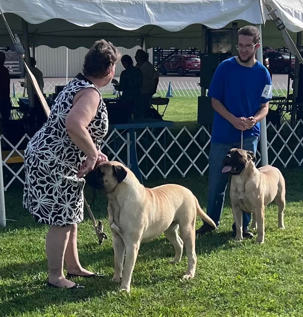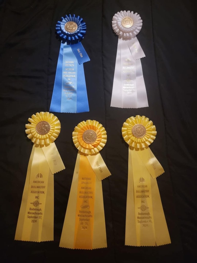 Sammy places 2nd and 3rd at Boxborough Massachusetts American Bullmastiff Association National Specialty Oct. ’24