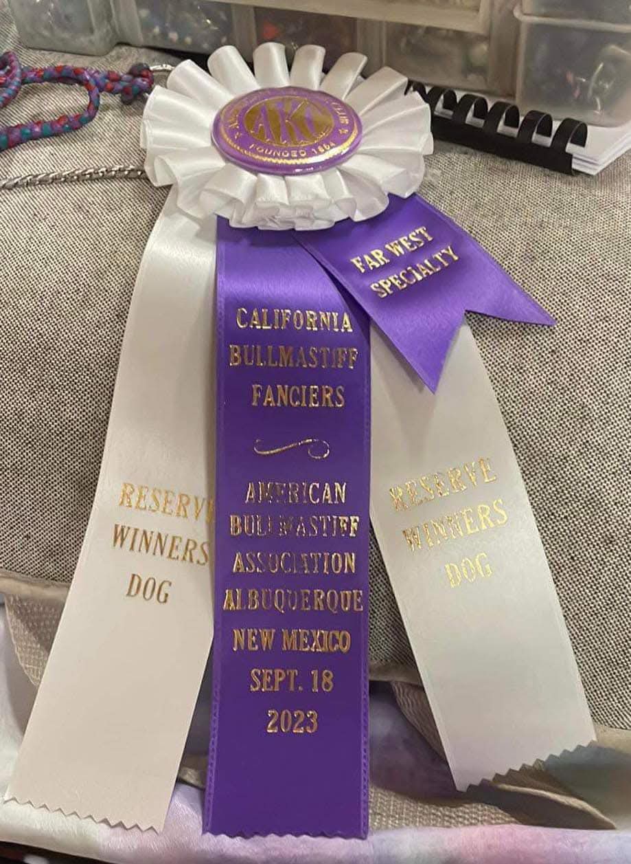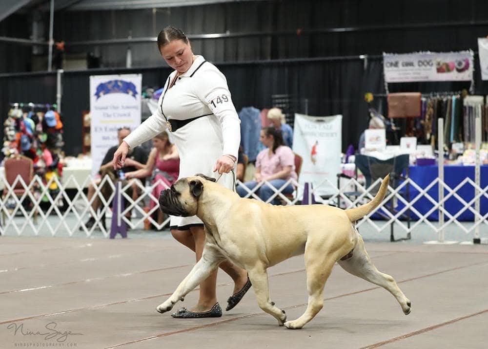 Hulk takes Reserve Winners at Nationals in Topeka Kansas at American Bullmastiff Association National Specialty in Oct ’22