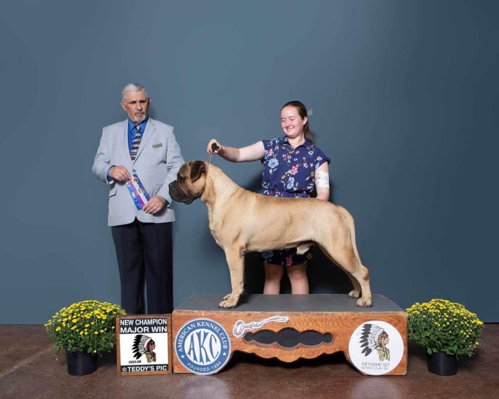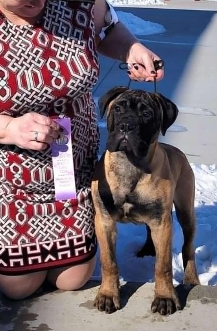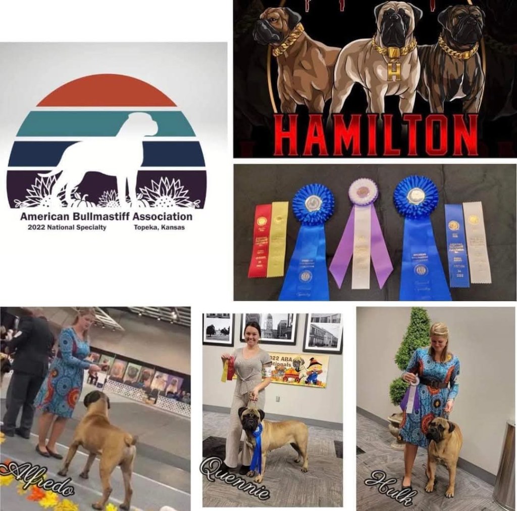 Queenie wins Group Best of Bitch 12-18mo at American Bullmastiff Association National Specialty in Topeka Kansas in Oct ’22.